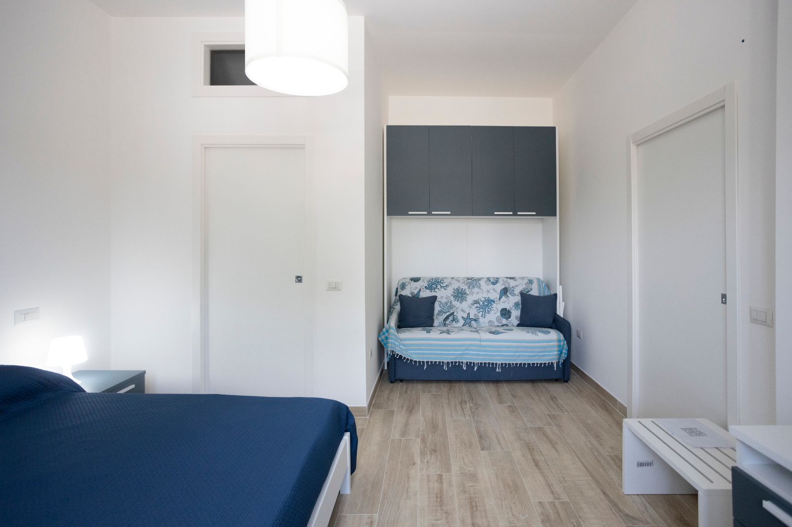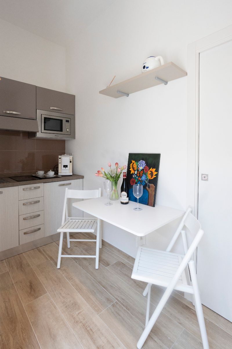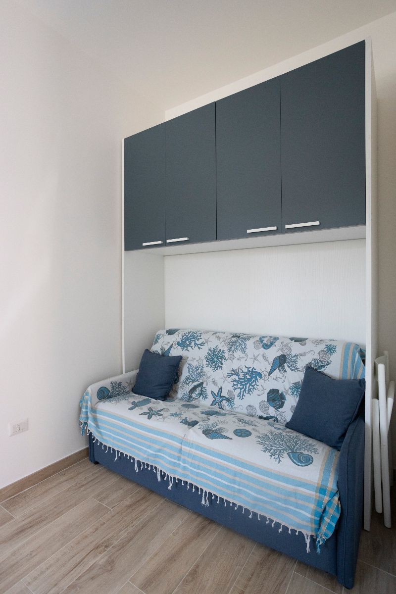 Entire apartment with bedroom with double bed, bunk sofa bed, separate kitchenette, bathroom with shower and small terrace.